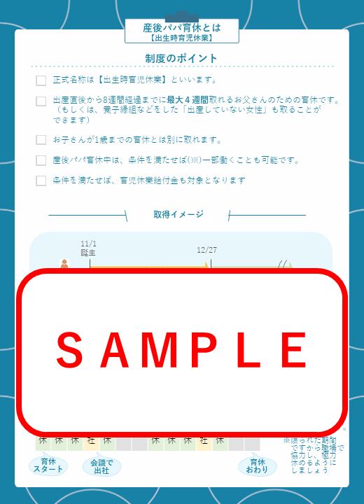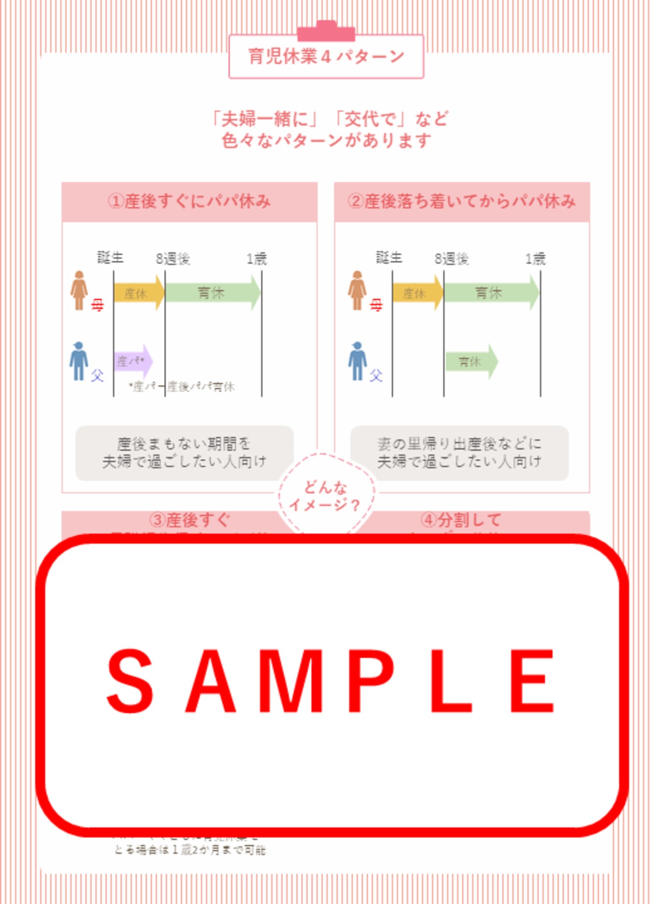 社員さんへの「育児休業に関する説明資料」としてもご活用いただけます。